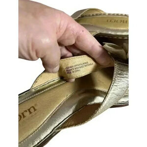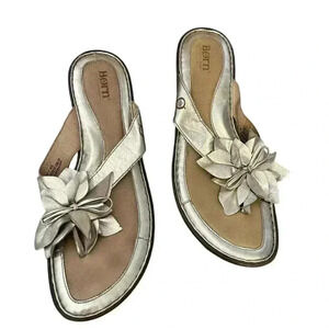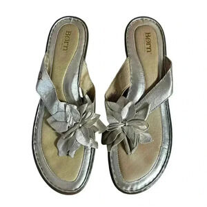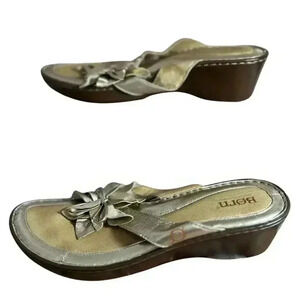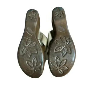 Born Gold Leather Floral Wedge Thong Sandal Women's Size 10 US 42 EU Very Nice