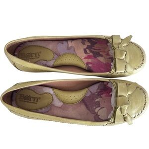 Stylish lime green loafers featuring a bow accent. Designed for comfort and everyday elegance. Women’s size 7/38. Good Preowned Condition with some marks on toe areas.