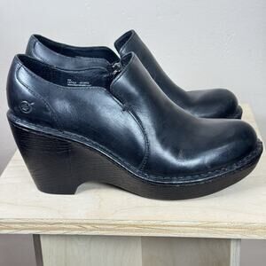 Born Grover Women's Wedges 9 black Leather Slip On Minimalist Shoes Heels. Condition is Pre-owned. Shipped with USPS Ground Advantage.
