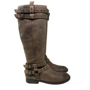 Born Gwynn Harness Knee High Brown Leather Double Buckle Riding Boots - Size 6.5