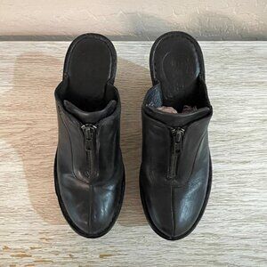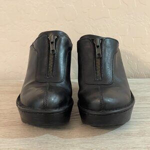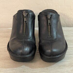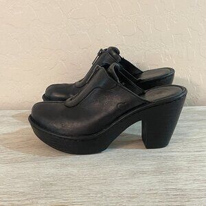 Born Haledon 7 Mules Clogs Black Leather Zip Platform Heels