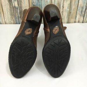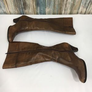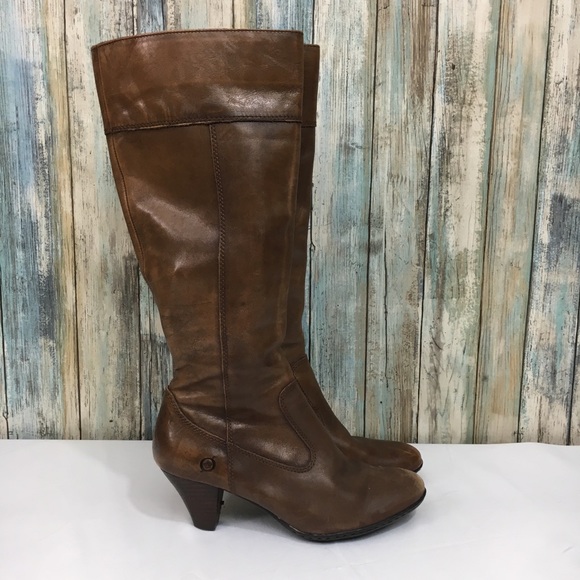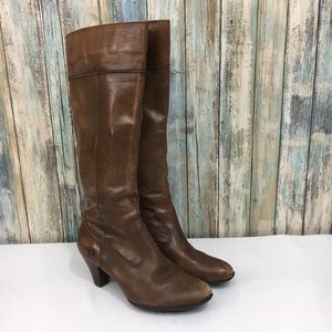 Born Handcrafted Women's 7.5/38.5 Side Zip Brown Leather Heeled Boots 15” Tall