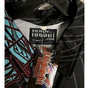 Born Hawaii Button Up Shirt Men's XXL Black/Blue Tribal All Around Print Party