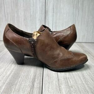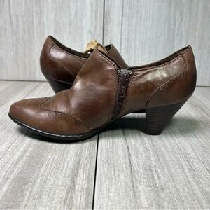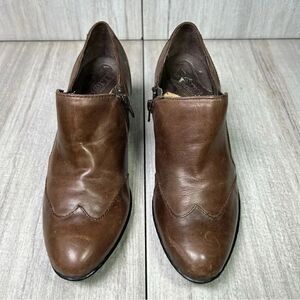 Born Heeled Ankle Boots Booties Side Zip Brown Leather Wingtip Women’s Size 6.5