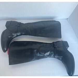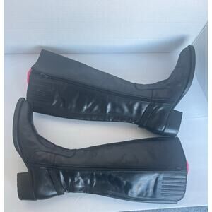 Born Helen Black Leather Knee High Zip Closure Round Toe Stacked Heel Boots 7.5