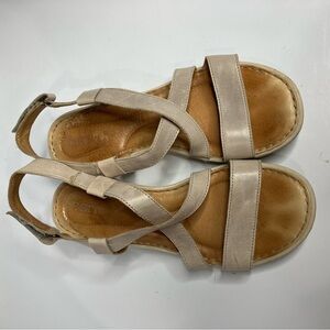 Born Idella wedge leather sandals tan size 9