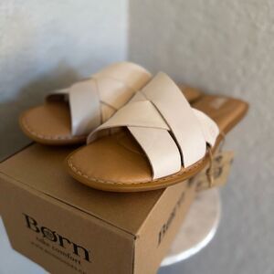 Born Ilana Leather Slide Sandal, Cushioned Padded, White Cream, Size 8, NWT