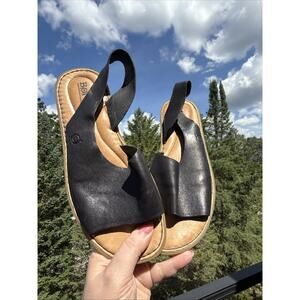 Born Inlet Slingback Sandals Womens 9M Black soft Leather Peep Toes Shoes