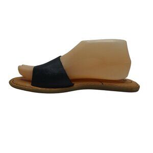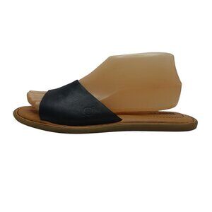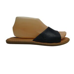Born Izabel Black Leather Open Toe Flat Slide Sandals Womens 8