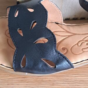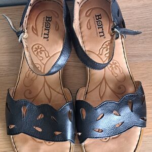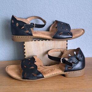 Born Janya Womens 8 Black Leather Strappy Ankle Buckle Sandals Comfortable 653
