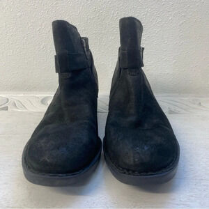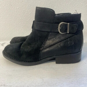 Born Jorgette Black Buckle Strap Distressed Leather Zip Booties Women’s Sz 8.5 M