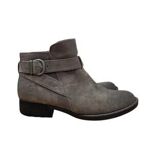 Born Jorgette Boot Womens Size 8.5 Distressed Gray Suede Block Heel Boho Bootie