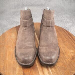 Born Jorgette Casual Ankle Booties Womens Size 6M Gray Nubuck Leather Zip Buckle