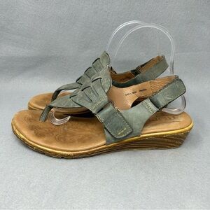 Born Karis D60504 Blue Leather Thong Wedge Sandals Women's US Size 9.