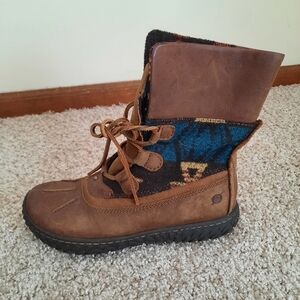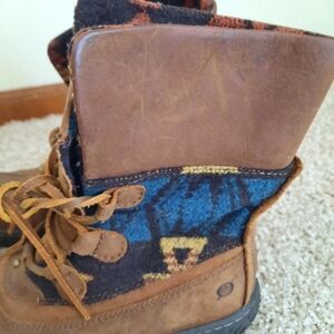 Born Kelisa Brown Leather Aztec Felt Lace-up Combat Boots Size 6.5. In excellent condition! Size 6.5