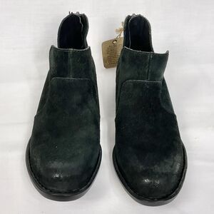 Born Kerri Booties Sz 6 Distressed Black Suede Ankle Zip Comfort New Boots