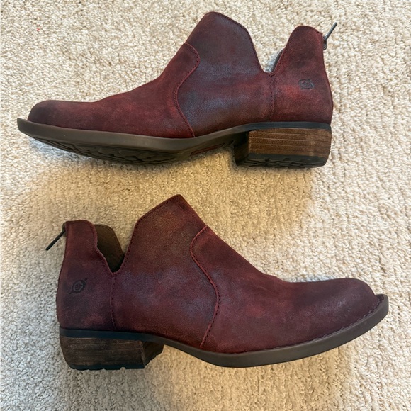 Born Kerri Distressed WesternBurgundy Suede Ankle Booties Size 7.5 M Pre-Owned