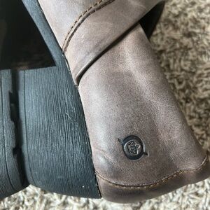 Born Kinney Sz 8 Distressed Brown Leather Booties Slip On Clogs Western Boho