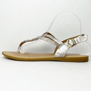 Born Lake Sandals 9M metallic leather braided flat buckle boho neutral strappy