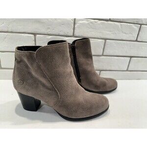 Step out in style with these beautiful Born Landa ankle boots. Crafted from high-quality gray suede, these boots feature a round toe and a zip closure for easy wear. The boots have a solid pattern and a block heel style that provides a comfortable fit for all-day wear. These boots are perfect for casual occasions and can be worn during the fall and spring seasons. The outsole is made of rubber, which provides excellent traction and durability. The boots come in a size 8.5 and are suitable for women who want to add a touch of elegance to their wardrobe.
