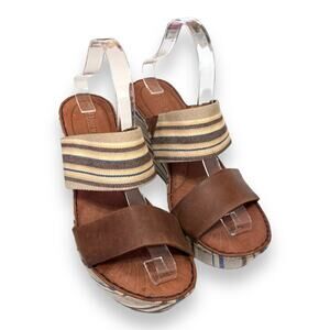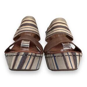 Born Leather And Striped Canvas Two Strap Platform Wedge Sandals Women's Size 10