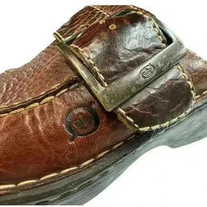 Born Leather Clogs Mules Wedges Womens Size 7/38 Buckle Detail Brown