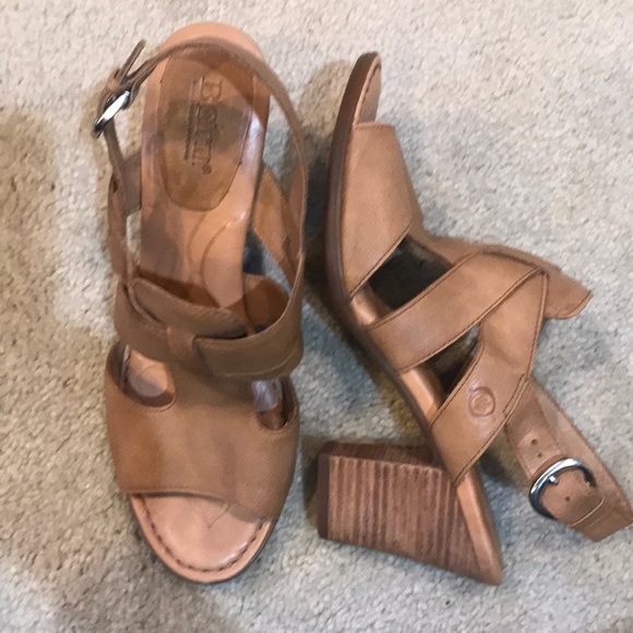 Born Leather Leather Block Heels Open Toe Ankle Strap Sandal- Size 9M