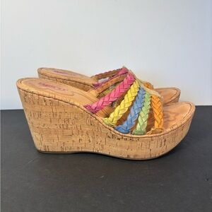 🌈 Born Leather Rainbow Braided Wedge Sandals Size 6 / EU 36.5