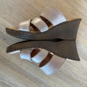 Born Leather Wedge Sandals Taupe Strappy Comfort Shoes Buckle Slip-On Slides 7M