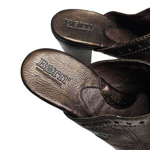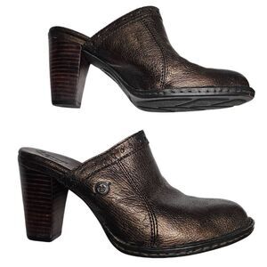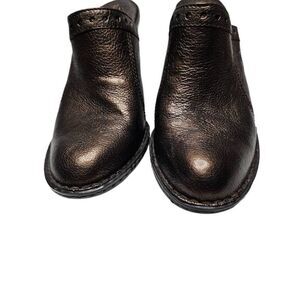 Born Lella Heeled Clog Mule Pewter Brown Metallic Y2K 90's Pebbled Leather Slip