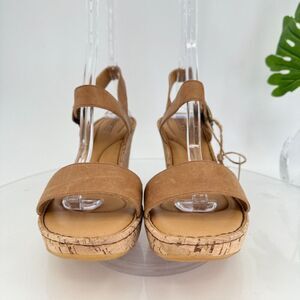 -Born Lenore Platform Wedge Sandals Womens Size 10 M Brown Leather Buckle Shoes