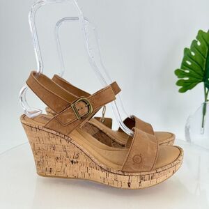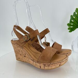 Born Lenore Platform Wedge Sandals Womens Size 10 M Brown Leather Buckle Shoes