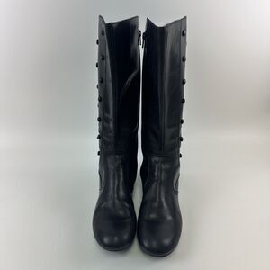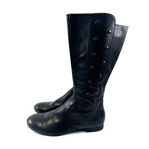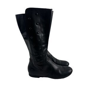 Born Martika Boot Tall Black Smooth Leather Zip Button Detail Flat Knee Women 10.