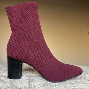 Born Meggs Too Knit Burgundy Fabric Sock Bootie Block Heel Women’s 9 M