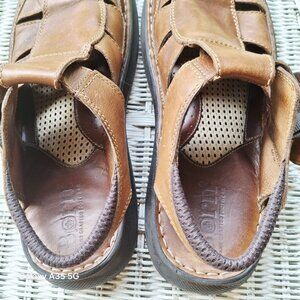 Born Men's Fisherman Sandals Brown Leather Size 12 Adjustable Strap Vacation