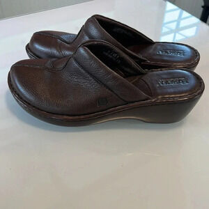 These mules are in great shape besides a little wear on the back of the heel, shown in pictures.
