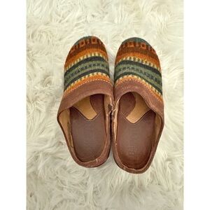 Stylish mules with a vibrant multicolor pattern. Comfortable and chic design. Perfect for casual wear.