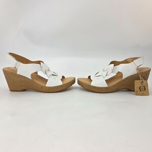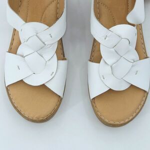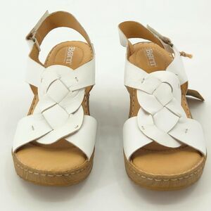 Born Nina Leather Wedge Sandals Womens Size 11 White Boho Neutral Summer Granny