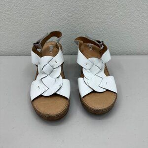 Born Nina White Leather Slingback Open Toe Wedge Sandals Shoes Womens size 10 M