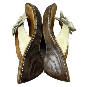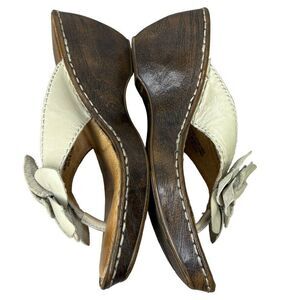 Born Off White Leather Flower Platform Wedge Sandal Womens Size 6M