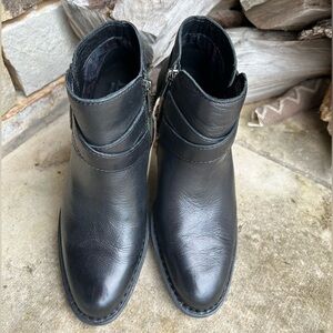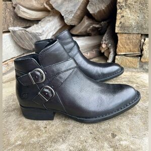 Born Ozark leather black ankle elegant booties w/dual buckle closure NWT Sz-6. I