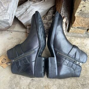 Born Ozark comfortable booties in 100 % leather, side zips, & rubber soles. Almond toe great quality shoes Sz-6 New with tags.