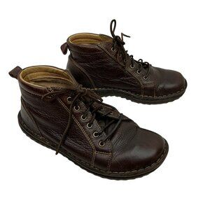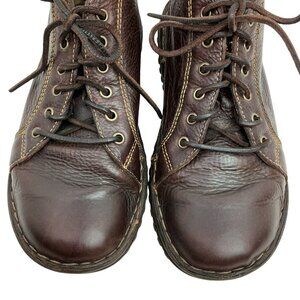 womens leather boots, brown ankle boots, lace-up boots, Born shoes, durable boots, comfortable footwear, classic women's shoes, rugged boots, size 9.5 shoes, casual leather boots, outdoor boots, vintage-inspired boots