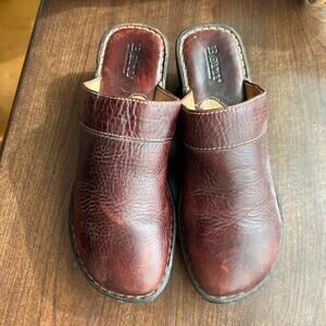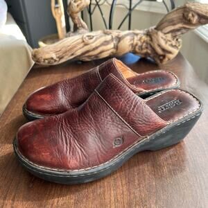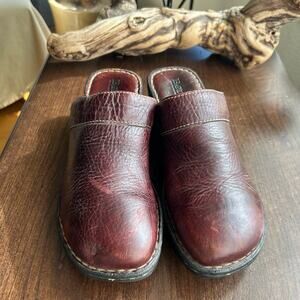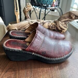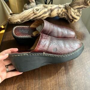 Born Pebbled Leather Wedge Slip-on Brown Clogs Mules Womens Size 10 / 42