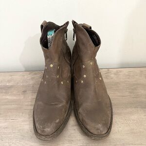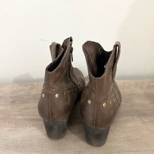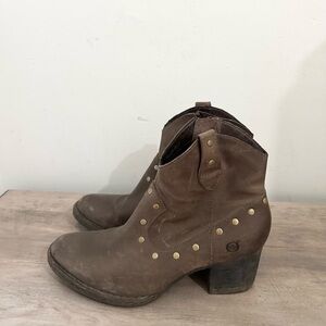 Born Perez Western Cowboy Ankle Boots Bootie Leather Brown 8.5 Gold Stud Zip