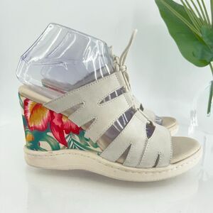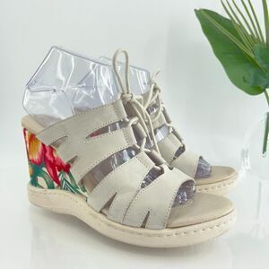 Born Piru Wedge Sandals Women's 8 Tropical Floral Lace Up Gladiator Boho Leather