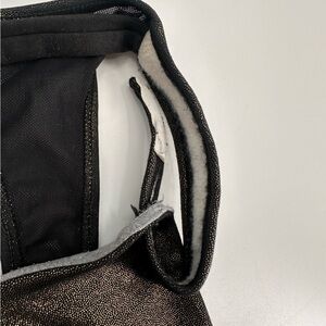 Good used condition with no size tag, and wear showing on the black straps. Straps have loop fasteners for easy feeding. No size tag, measures 15” across the band. I estimate this bra is size large