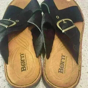 Born Rio Sandals Women's Size 9 Black Suede Leather Buckle Cross Straps
