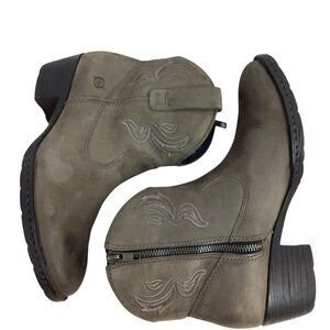 Born boots, leather boots, women's ankle, stylish footwear, plaid lining, side zipper, embroidered boots, comfortable boots, casual boots, brown boots, 7.5 boots, Born shoes, leather footwear