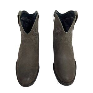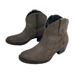 Born Riven Embroidered Womens 7.5 Western Leather Ankle Boots Plaid Lining